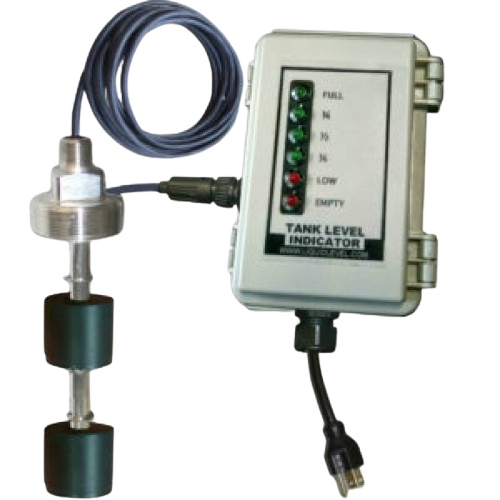 These multi point tank level indicators are a great choice for storage tanks and totes. They provide bright, easy to read, full to empty LED tank level gauge indication. These versatile float level indicators are available in all stainless steel, stainless & buna, and polypropylene. Additional output relays can be added for high and low alarms or pump control.